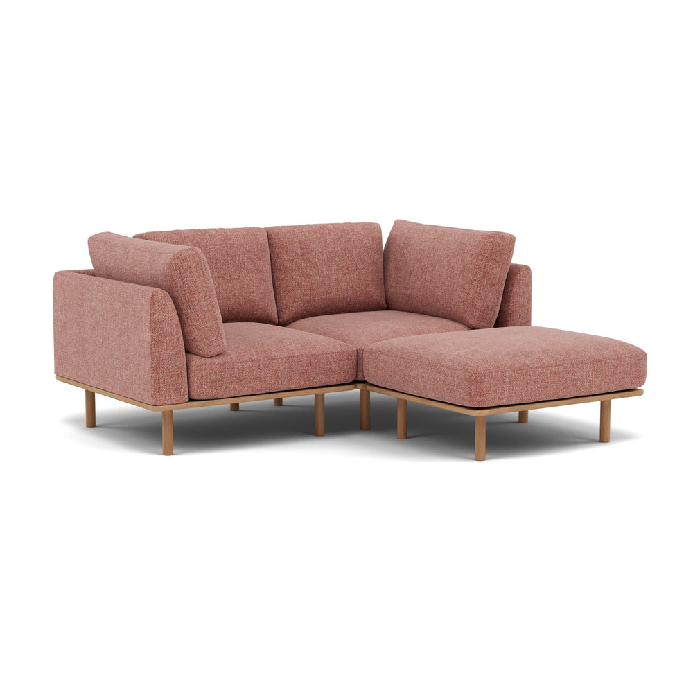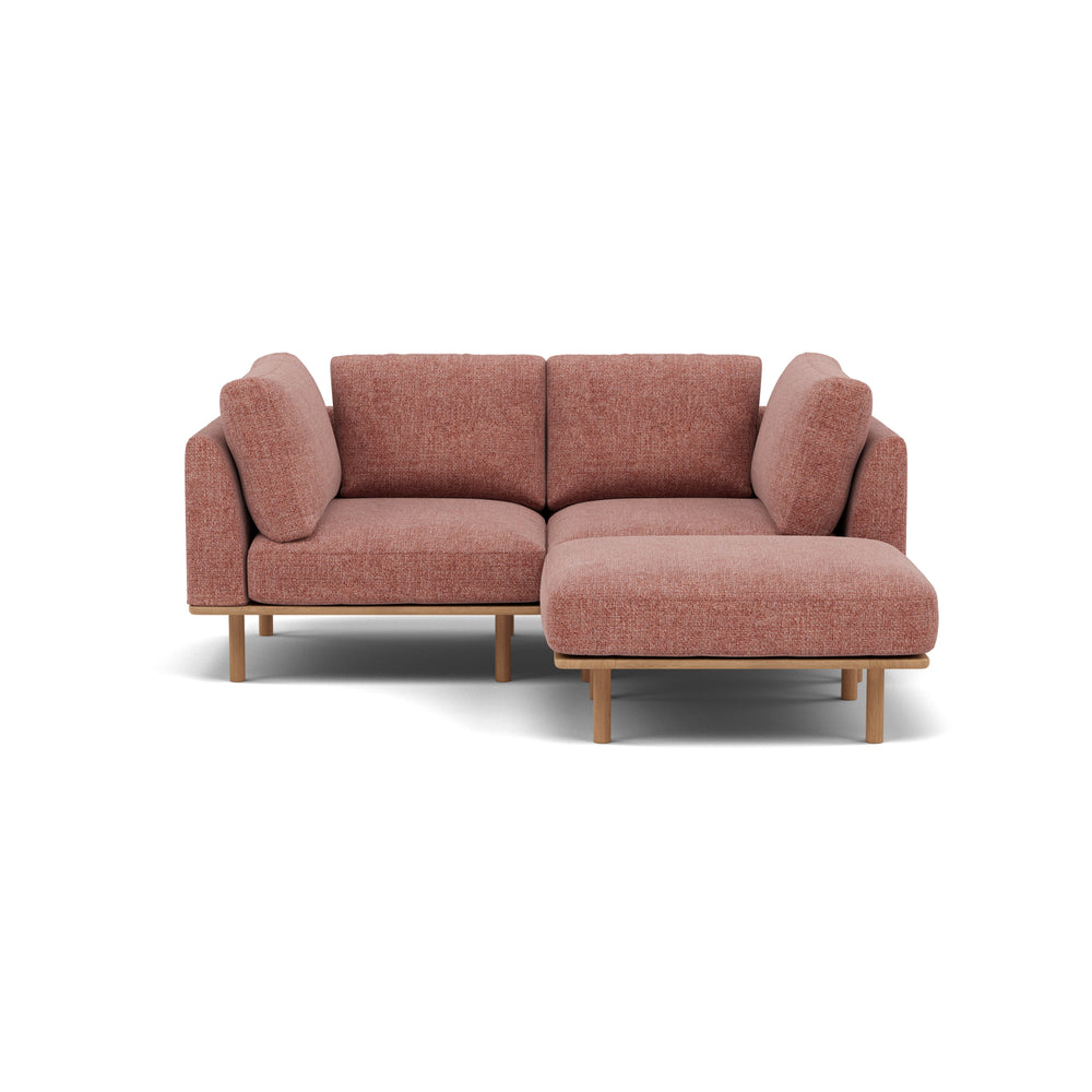 2-Seater Chaise in Clay Pink Fabric with Solid American Oak