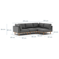 - 2x Corner Module: each 4x Legs, Pre-assembled oak base with attached backrest/armrest, Seat Cushion, Back Cushion, Arm Cushion