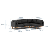 - 2x Corner Module: each 4x Legs, Pre-assembled oak base with attached backrest/armrest, Seat Cushion, Back Cushion, Arm Cushion