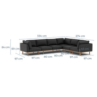 - 3x Corner Module: each 4x Legs, Pre-assembled oak base with attached backrest/armrest, Seat Cushion, Back Cushion, Arm Cushion