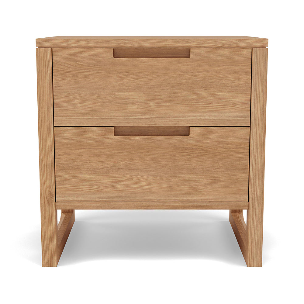 The Bruno XL nightstand in solid American oak scales up storage with 2 soft close drawers and a felt lined top drawer for small valuables. Its neat, minimal form suits modern bedrooms, and the durable finish is made for everyday living.