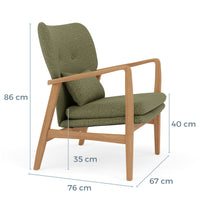 Embrace laid-back vibes with the Franz Armchair, featuring a Solid Oak frame and fabric seating with a choice of four different colours. This piece from Icon By Design effortlessly combines comfort and style, making a statement in any living space.