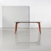 Hilda Dining Table - Glass + Solid Walnut
