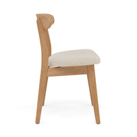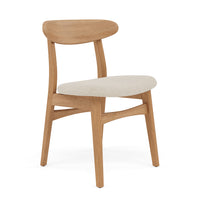 The Magnus Dining Chair is Scandinavian inspired and crafted from solid American oak, designed to bring beauty and comfort to your table. Its frame is carefully joined for long term stability, while a supportive seat upholstered in oatmeal beige fabric encourages lingering conversations and relaxed meals. The fabric feels soft yet durable for everyday use. Subtle contours in the back and seat support natural posture so guests feel comfortable from first course to last. Hand finished surfaces celebrate the character of real wood and pair easily with modern or classic settings. The Magnus silhouette blends gentle curves with clean lines for balanced support. As an IconByDesign original, it reflects our commitment to enduring craftsmanship and design integrity that stands apart from imitations.