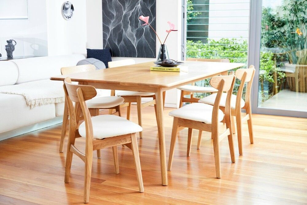 The Magnus rectangular dining table in solid American oak is Scandinavian inspired with soft curves, clean lines, and rounded corners that welcome daily meals and weekend feasts. A 2H rated protective tabletop coating resists scratches and moisture to handle real life gracefully. The 95″ x 39″ sizing offers generous surface area while keeping proportions balanced for modern spaces. Built from sustainably sourced timber with no MDF and no veneer to honor authentic materiality.