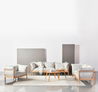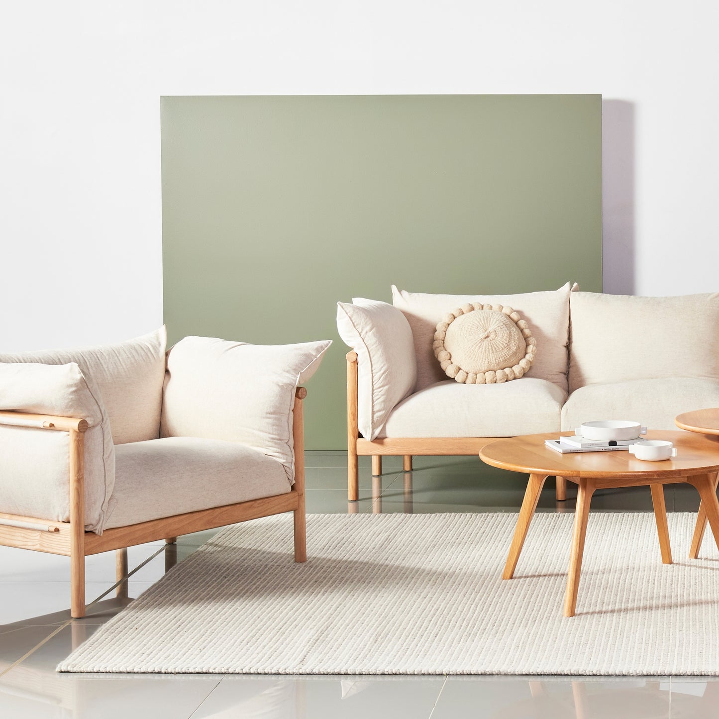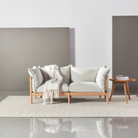 The Olivia 2-seater in soft grey fabric showcases Scandinavian inspired proportions elevated by a solid American oak frame. Its graceful silhouette and cylindrical legs feel light from every angle, while plush cushioning offers an inviting, sink in seat. Removable covers allow professional cleaning so it looks refined through years of everyday living and entertaining. Pirelli webbing delivers lasting comfort without metal springs and the solid timber build avoids MDF and veneer. An IconByDesign classic admired for years, Olivia proves that true design endures while elevating the rhythm of daily life.