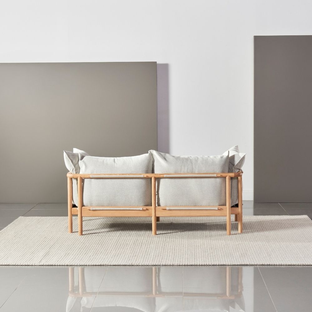 2-Seater in Soft Grey Fabric with Solid American Oak