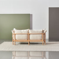 The Olivia 2-seater in sand beige velvet showcases Scandinavian inspired proportions elevated by a solid American oak frame. Its graceful silhouette and cylindrical legs feel light from every angle, while plush cushioning offers an inviting, sink in seat. Removable covers allow professional cleaning so it looks refined through years of everyday living and entertaining. Pirelli webbing delivers lasting comfort without metal springs and the solid timber build avoids MDF and veneer. An IconByDesign classic admired for years, Olivia proves that true design endures while elevating the rhythm of daily life.