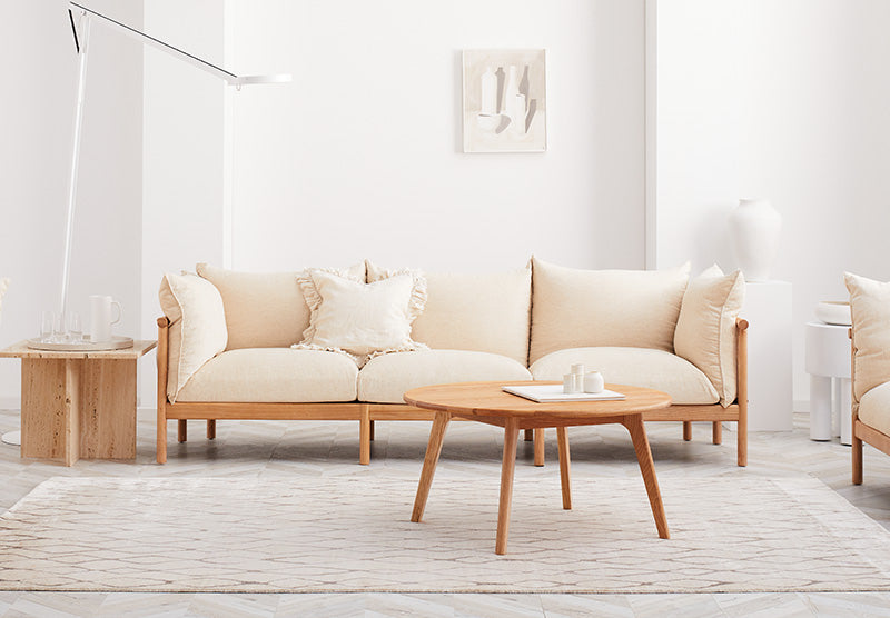 Introducing the Olivia Three-Seater Sofa, boasting a Solid Oak frame and Linen seating available in four colours. This sofa exemplifies minimalism, simplicity, and functionality, offering a stylish and comfortable addition to your living room.