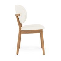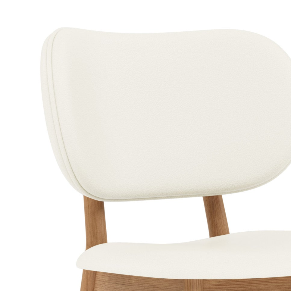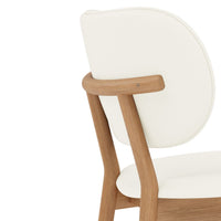 The Olivia Dining Chair is Scandinavian inspired and crafted from solid American oak, designed to bring beauty and comfort to your table. Its frame is carefully joined for long term stability, while a supportive seat upholstered in cream leather encourages lingering conversations and relaxed meals. The leather is supple and designed to age beautifully with use. Subtle contours in the back and seat support natural posture so guests feel comfortable from first course to last. Hand finished surfaces celebrate the character of real wood and pair easily with modern or classic settings. The Olivia frame offers a graceful stance that feels welcoming from every angle. As an IconByDesign original, it reflects our commitment to enduring craftsmanship and design integrity that stands apart from imitations.