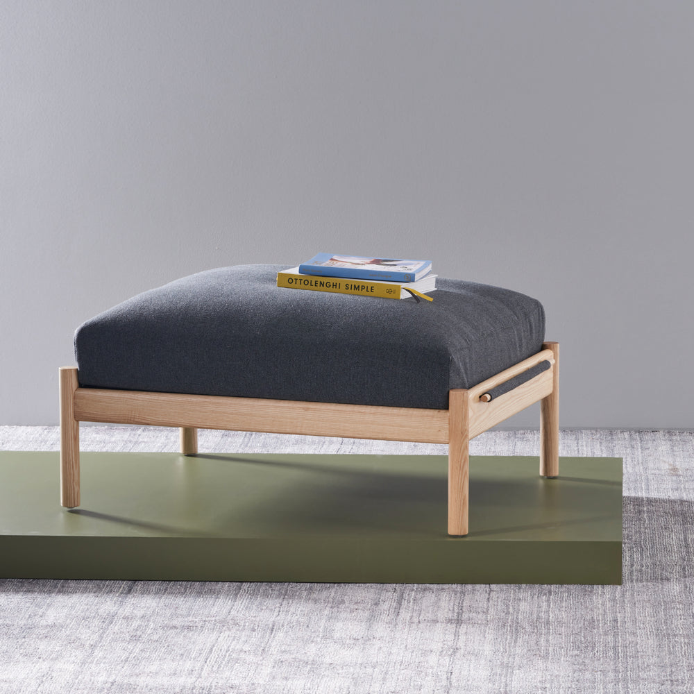 An ottoman designed to pair seamlessly with sofas and armchairs. It offers a supportive cushion that doubles as a footrest or occasional seat.