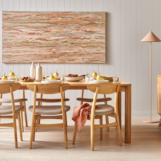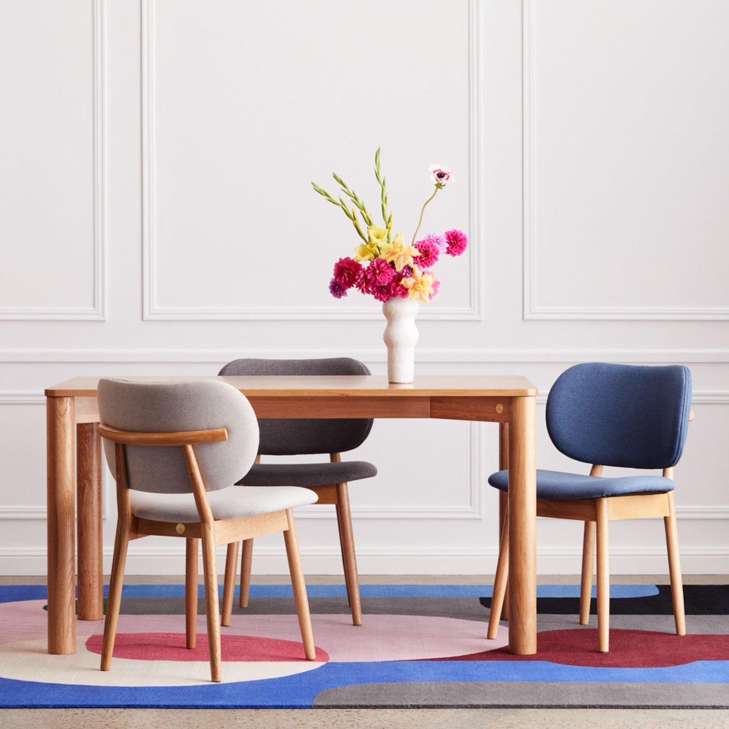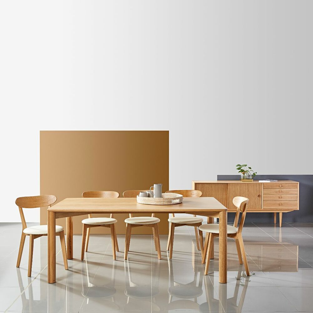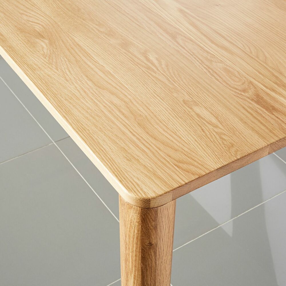 The Olivia rectangular dining table in solid American oak balances timeless simplicity with thoughtful detailing like cylindrical legs and softly rounded edges. The 71″ x 39″ sizing offers generous surface area while keeping proportions balanced for modern spaces. Built from sustainably sourced timber with no MDF and no veneer to honor authentic materiality.