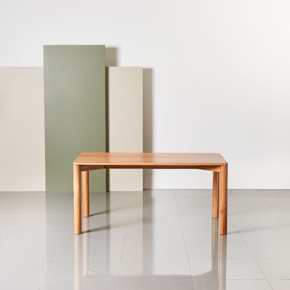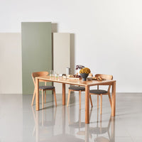 The Olivia rectangular dining table in solid American oak balances timeless simplicity with thoughtful detailing like cylindrical legs and softly rounded edges. The 63″ x 35″ sizing offers generous surface area while keeping proportions balanced for modern spaces. Built from sustainably sourced timber with no MDF and no veneer to honor authentic materiality.