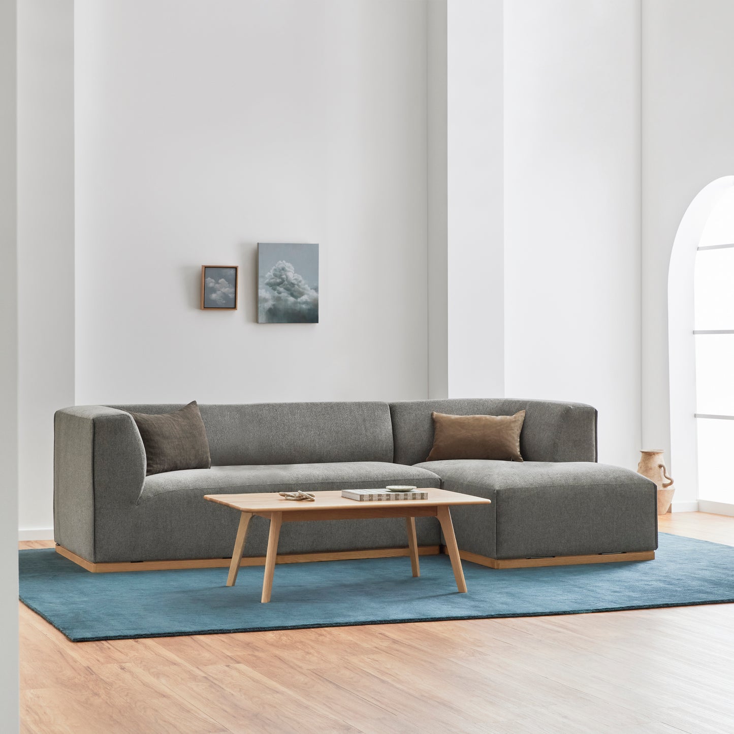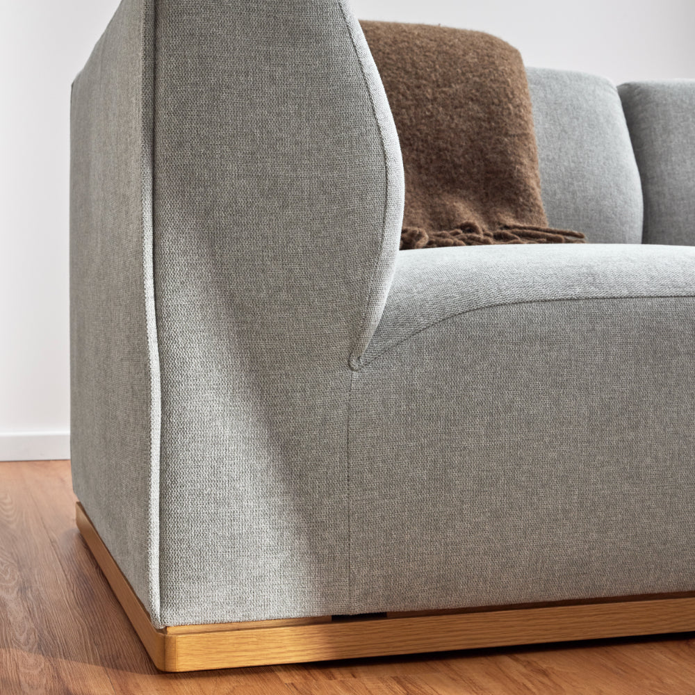 3-Seater Right-Hand Chaise in Quarry Grey Fabric with Solid American Oak